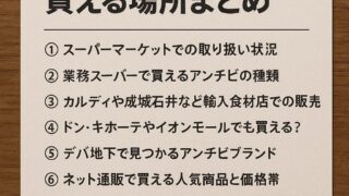 「アンチョビ どこに売ってる?」という疑問を徹底解決!スーパーや業務スーパー、カルディ、ドンキホーテ、デパ地下など、アンチョビが買える実店舗の情報を網羅。さらに、Amazonや楽天市場、Yahoo!ショッピングなどの通販で購入できる人気商品や、お得に買うコツまで詳しく解説しています。スカーリアさんの本格派アンチョビから、コスパ抜群の業務用まで幅広く紹介。見つからないときの代用品や、料理での活用方法も紹介しており、アンチョビ初心者にも安心な内容です。どこで買えるのか悩んでいる方はぜひチェックしてください!