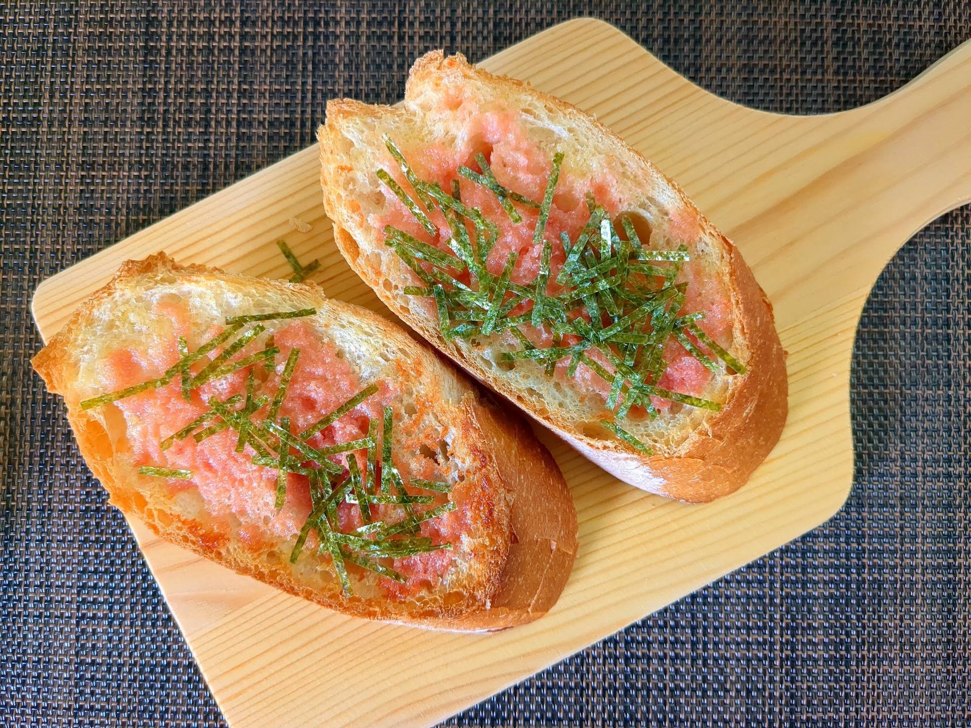 - 食パンにマヨ+たらこチューブ+海苔で絶品トースト